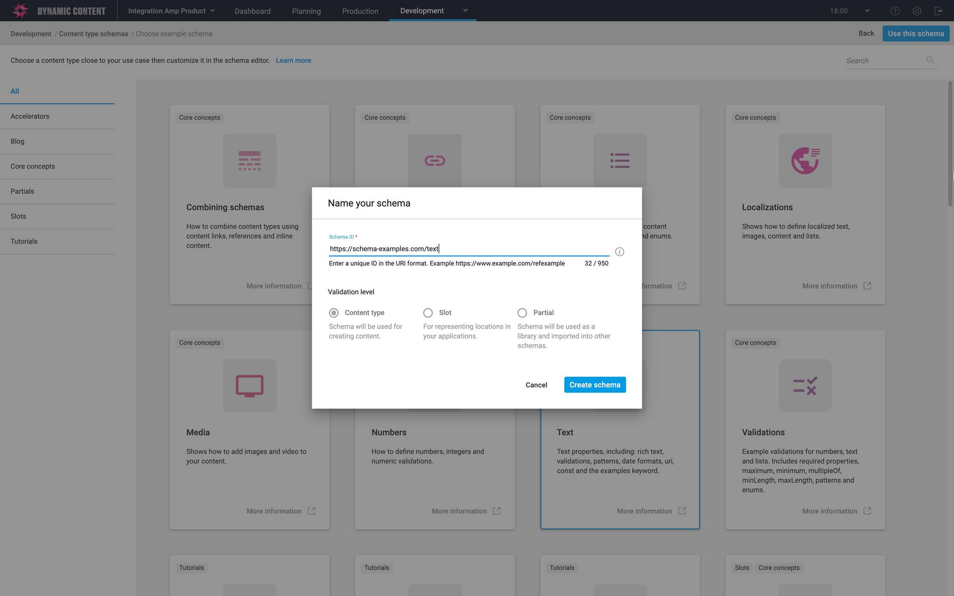 Dynamic Content- The Schema Editor: content type schema example templates